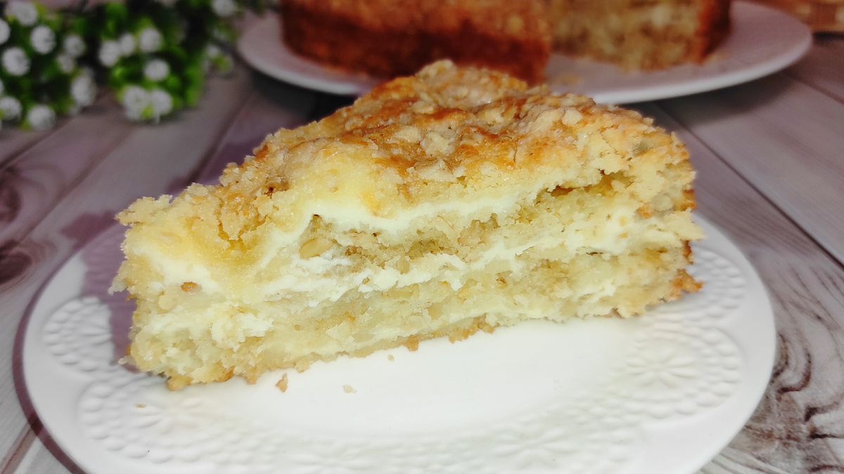Этот сметанник примечателен тем, что процесс приготовления не требует долгого возни с тестом. Вместо базового теста используется смесь овсяных хлопьев и муки. Такой подход обеспечивает пирогу необычную текстуру, а также нежность и достаточную сладость, которая никого не оставит равнодушным.