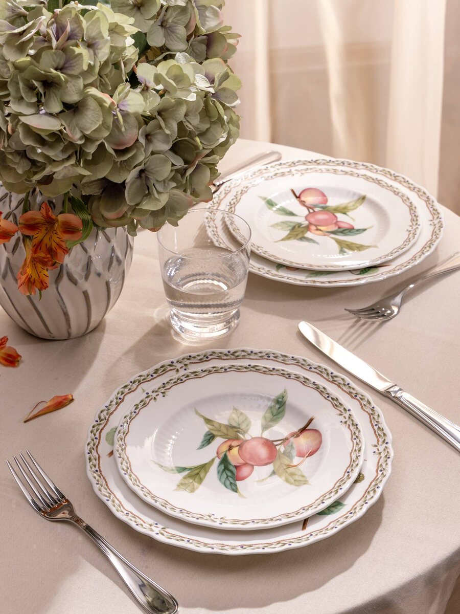 - Обеденные и закусочные тарелки;