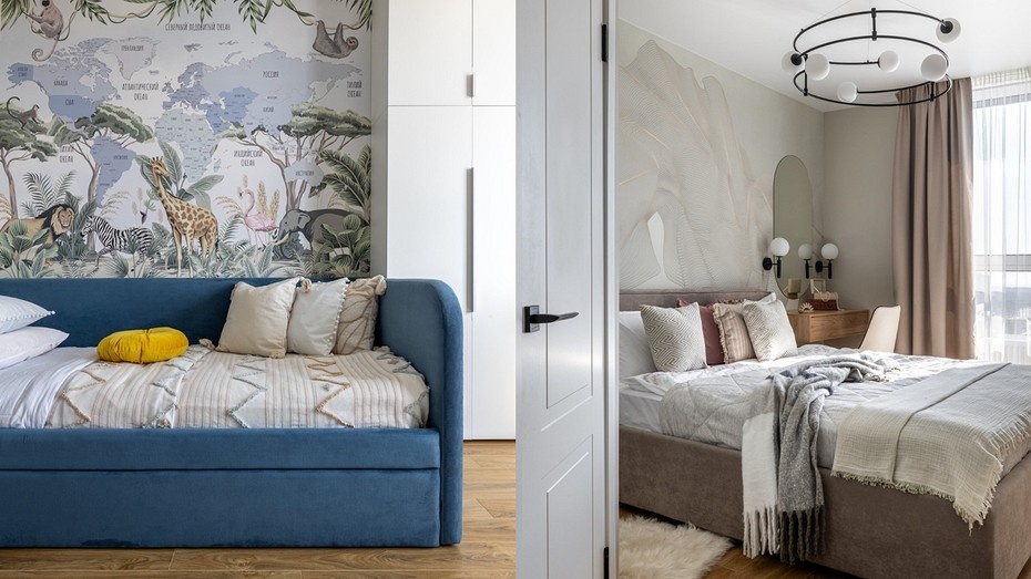 Система хранения была продумана до мелочей — пространства организованы так, чтобы каждая вещь имела своё место. При входе находится вместительный шкаф для одежды, а в детской – два шкафа для игрушек и будущего рабочего места ребенка.