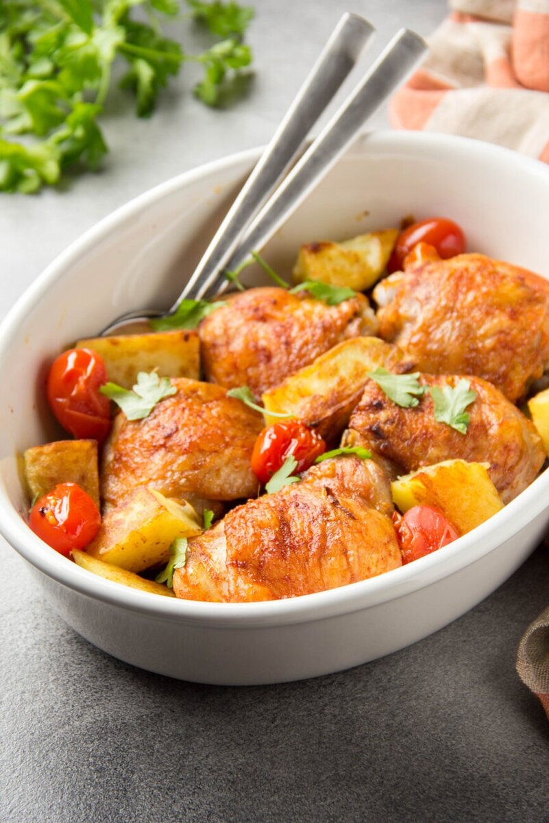 Нежные запеченные куриные бедра с яркими овощами на вашем столе