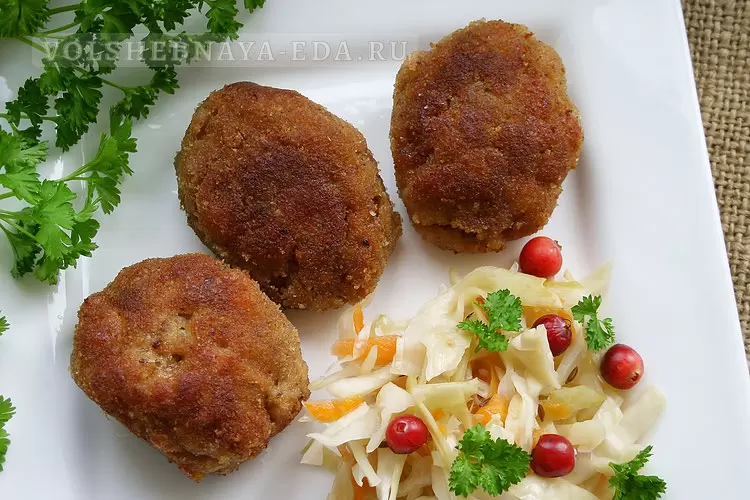 Затем смочите руки водой и формируйте котлеты желаемого размера, обваляйте их в панировочных сухарях. Обжаривайте на растительном масле до золотистой корочки с обеих сторон. Далее, помещаем котлеты в жаропрочную форму и отправляем в предварительно разогретую духовку на 10 минут при температуре 200 градусов.