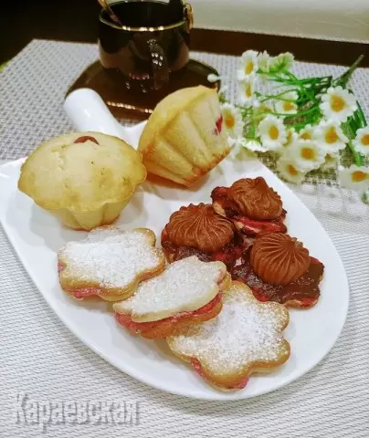 Для джема используются ягоды (например, клюква), которые становятся основой для сладкой начинки. Приготовление печенья включает смешивание ингредиентов и выпекание до золотистого цвета, после чего его пора будет намазывать джемом и объединять со вторым печеньем.