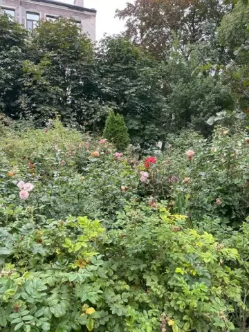 Во время первой прогулки на обед была обнаружена тихая цветочная композиция. Густые кусты и благоухающие цветы создают атмосферу расслабления, которая контрастирует с шумом мегаполиса. Это напоминает о красоте природы, где стало возможным забыть о городской суете и насладиться моментом.