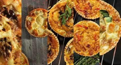 Французские открытые пироги, или киши, являются настоящим кулинарным искусством. Их разнообразие радует гурманов и любителей вкусной пищи. В кондитерской сети «Волконский» приготовили удивительные варианты кишей, в числе которых - с репчатым луком, пореем, капустой с черносливом, цветной капустой и, конечно, с креветками.