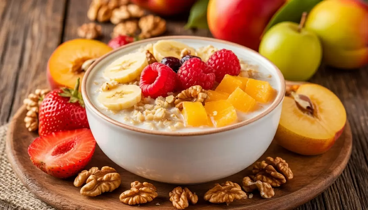 Овсянка с фруктами и орехами