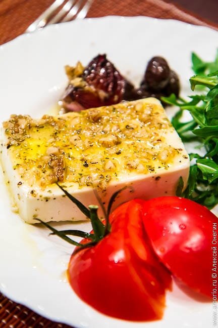 Важно выбирать натуральный сыр фета без добавления растительных жиров — это сделает запекание более удачным. Если настоящий сыр не удалось найти, можно использовать брынзу. Важно предварительно промыть ее под проточной водой, чтобы устранить излишнюю солёность.