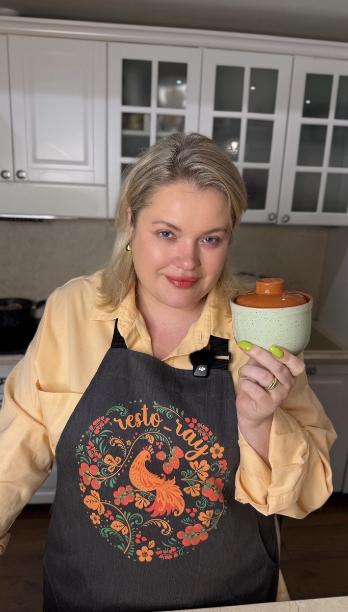 - Помните, помещать блюдо в керамический горшочек нужно только в холодную духовку, а затем можно разогревать до 300 градусов.