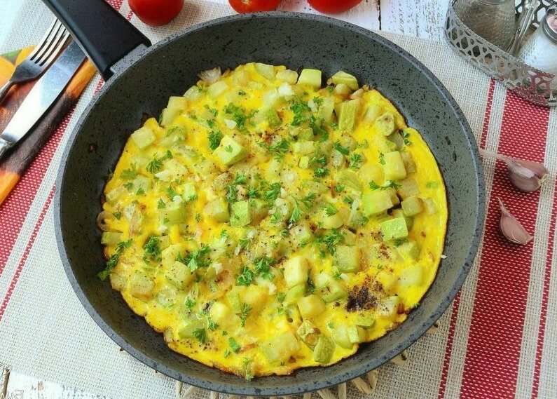 Тушеные огурцы с яйцом и зеленым луком