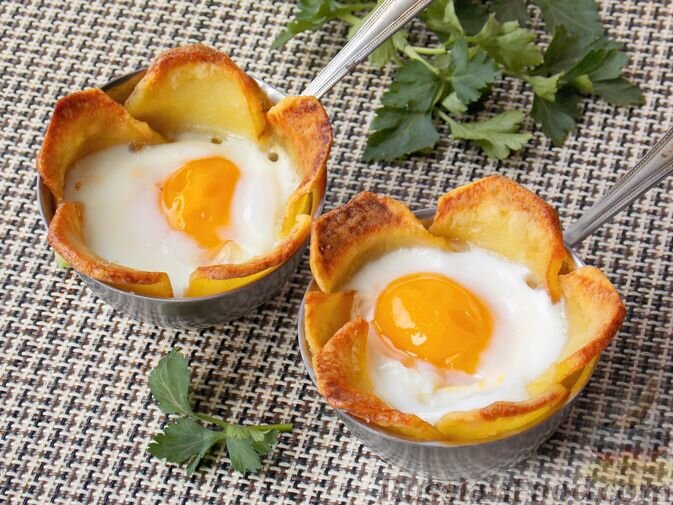 Для яичницы можно выбрать привычный подход или удивить гостей оригинально оформленным вариантом "цветочка" с картофелем, запечённым в духовке. Такой завтрак поднимет настроение и сделает утро более ярким.