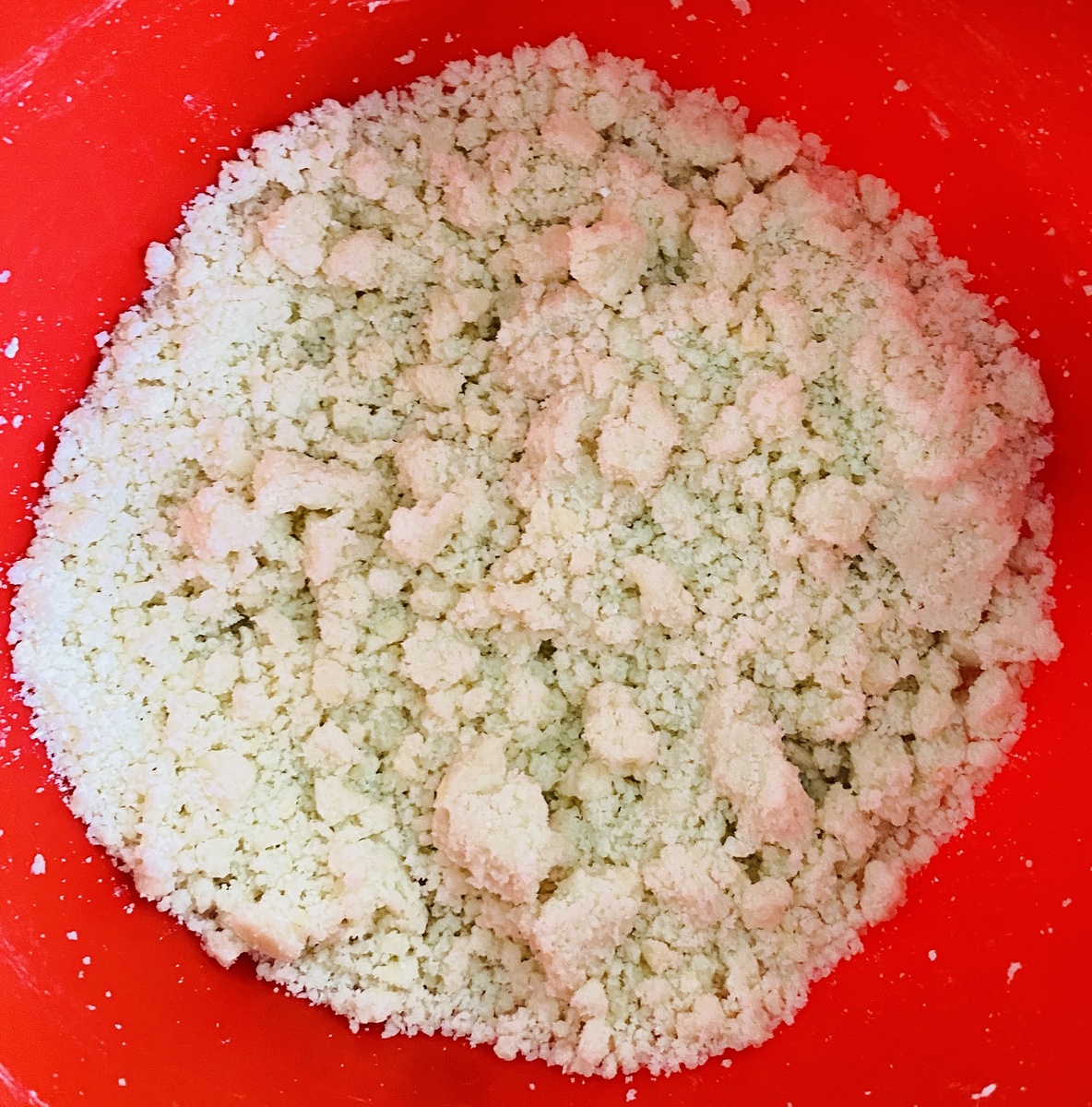 Теперь перейдем к самому увлекательному процессу. Сначала сливочное масло натирается на крупной терке, чтобы оно легко смешивалось с другими ингредиентами. После этого в смесь добавляются перепелиные яйца, сахар и безглютеновая мука. Все это тщательно перетирается руками, пока не образуется однородная крошка.
