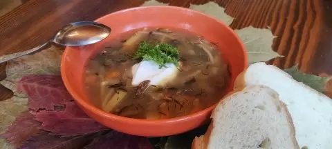- Сухие грибы (белые, подберёзовики) — большая горсть