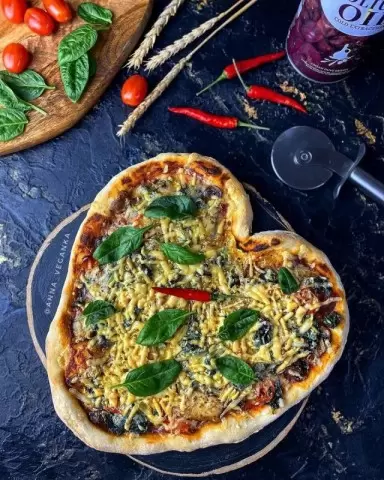 Домашняя пицца-сердце – идеальное решение для особого случая: будь то День Святого Валентина, годовщина, день рождения или просто уютный вечер вдвоем. Это блюдо сочетает в себе легкость и насыщенность, ведь его тесто сделано без животных компонентов, а начинка полностью растительная. Внутри вас ждут нежнейшие грибы, шпинат, маринованный тофу и веганский сыр. Получается не только вкусно, но и полезно!