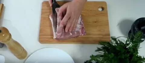 Сначала мясо следует тщательно промыть, обсушить и разрезать вдоль, не доходя до конца. Затем, раскрывая его как книгу, накрыть пленкой и аккуратно отбить до ровной толщины.