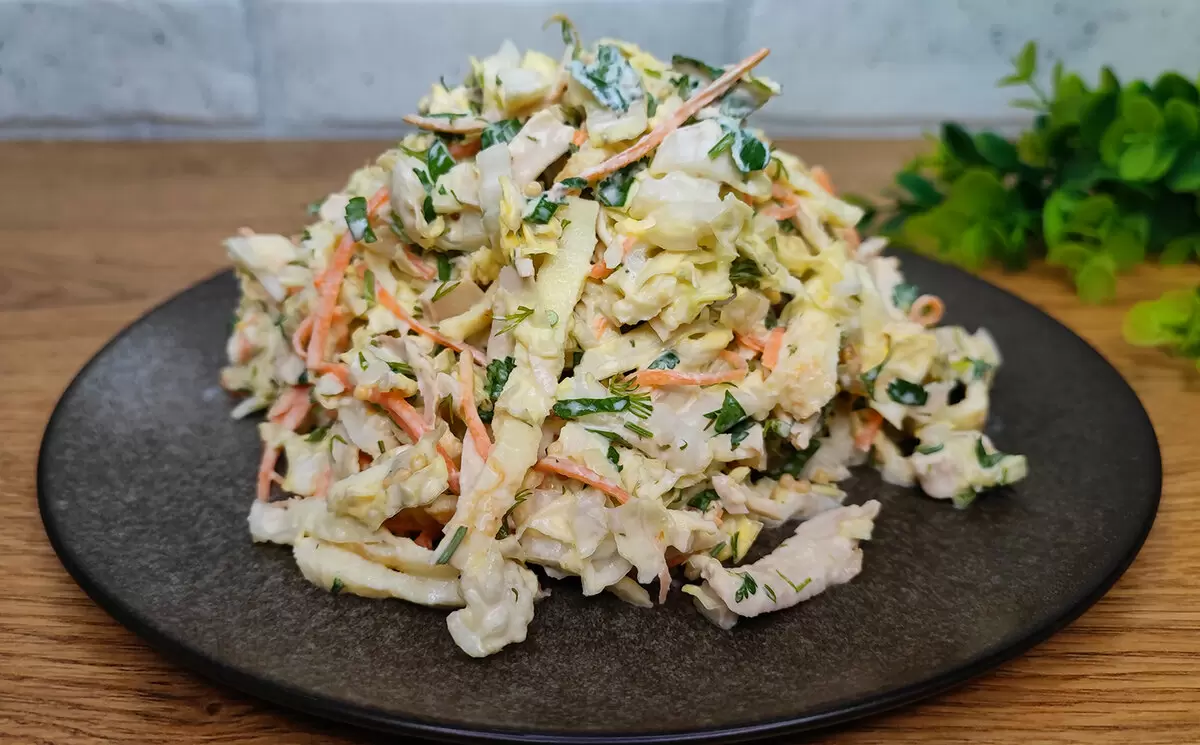 Пекинская капуста – это не только полезный, но и невероятно вкусный ингредиент для салатов. Этот легкий и аппетитный салат станет отличным дополнением как к повседневному, так и к праздничному столу. Приготовить его можно всего за 10 минут, а результат приятно удивит даже самых взыскательных гостей.