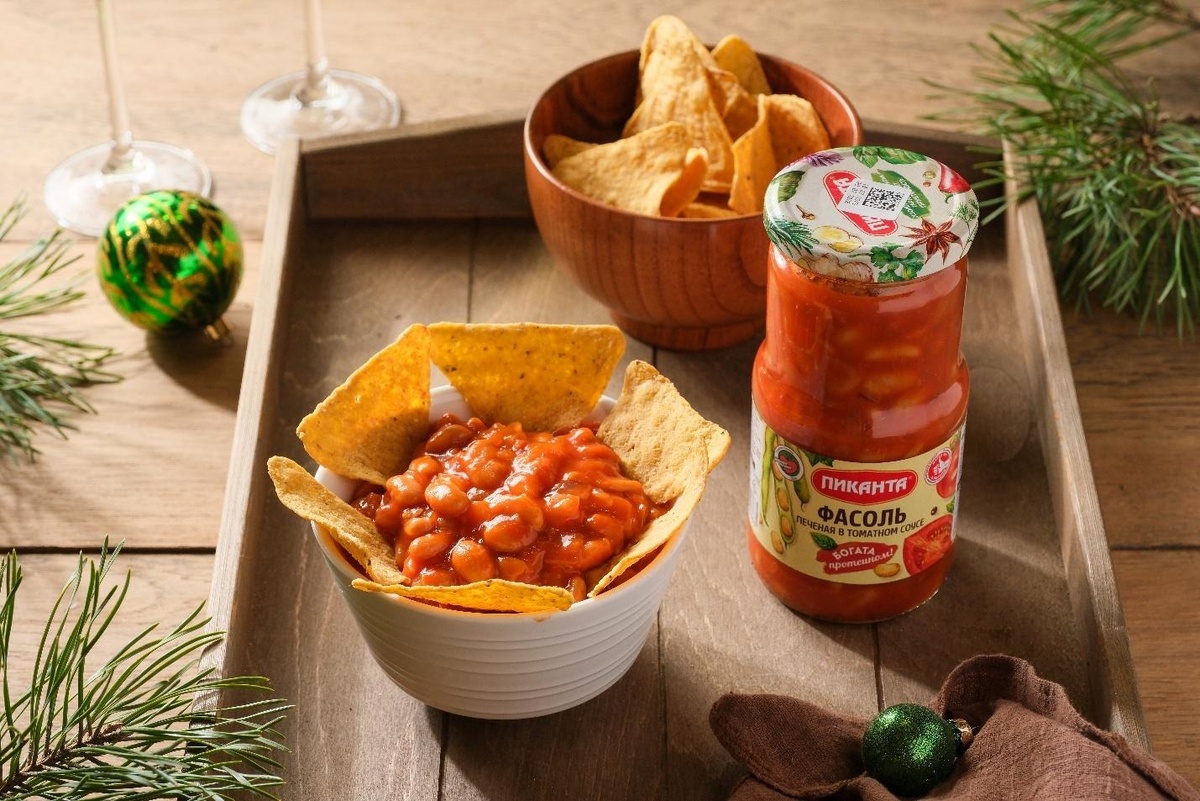 Начос или чипсы с фасолью в томатном соусе